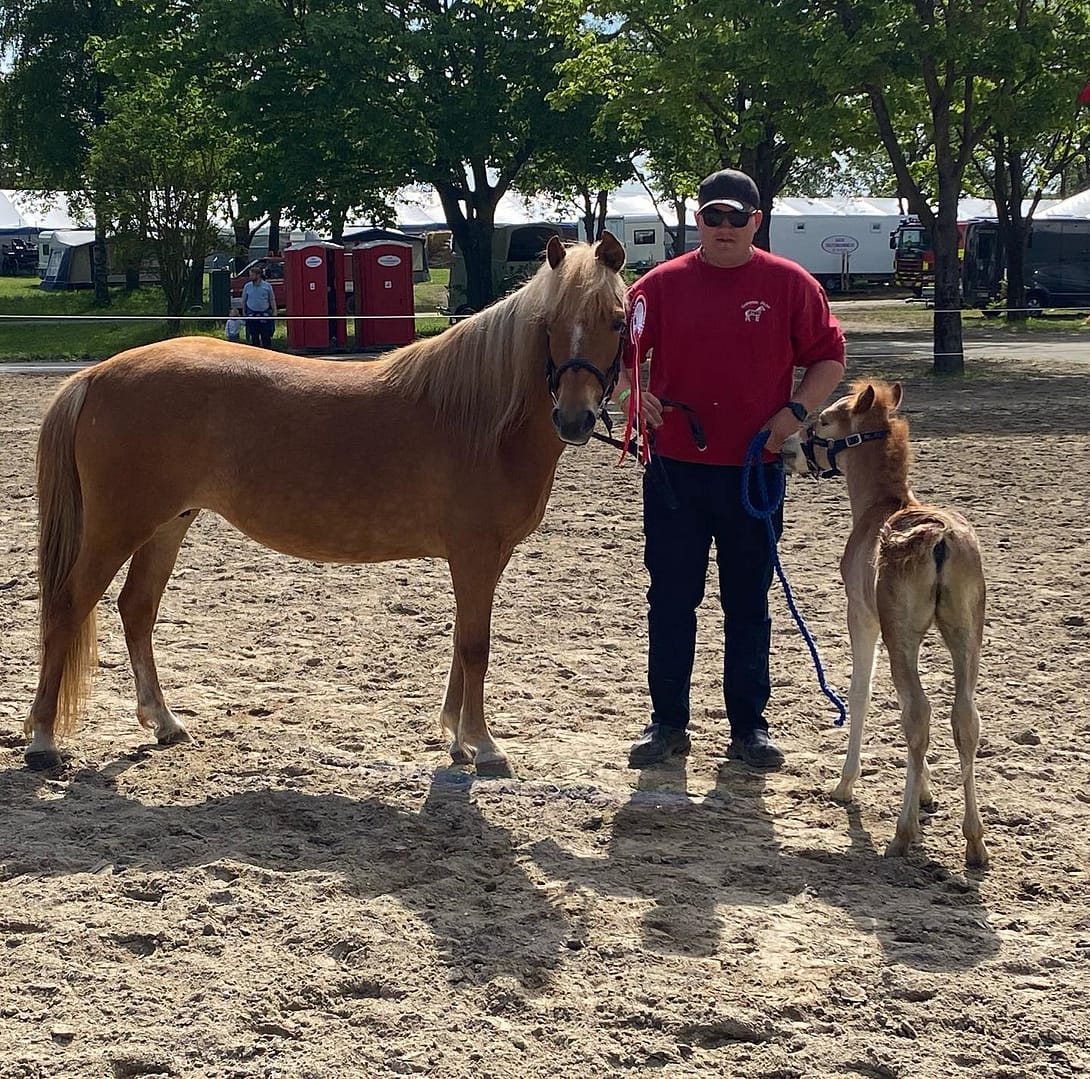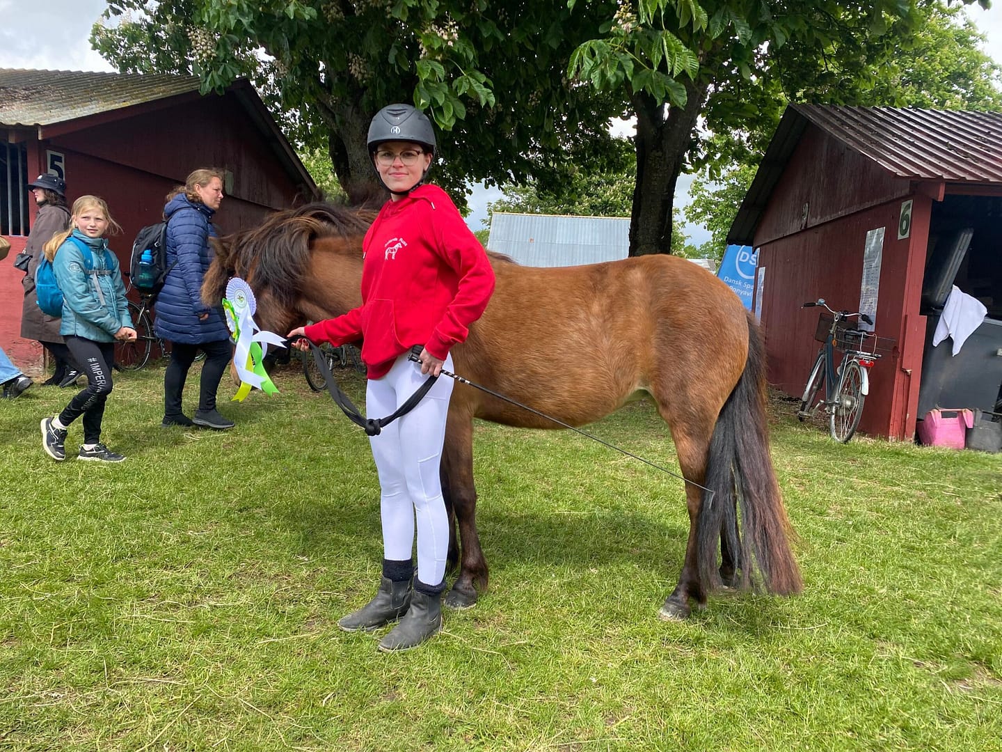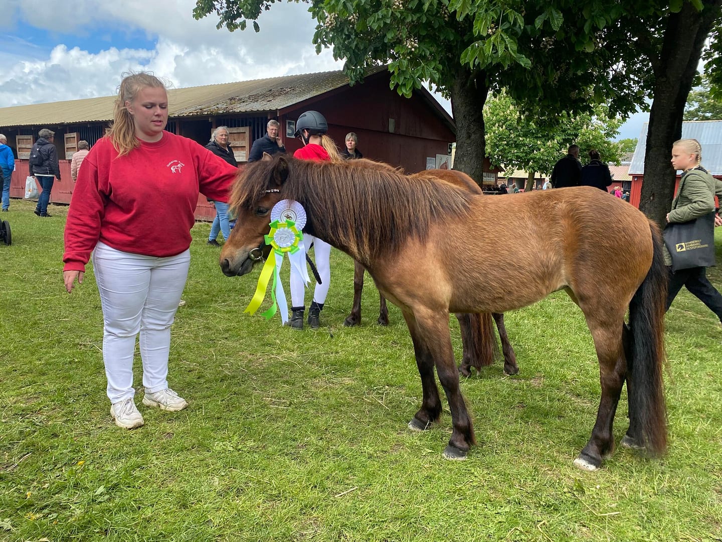 Phil’s Ditte, hoppe, fik 23 point + ærespræmie og blev udtaget til “Bedste følhoppe”. Hingsteføllet fik pæne ord med fra dommeren og blev også udtaget til “Skuets bedste føl”.